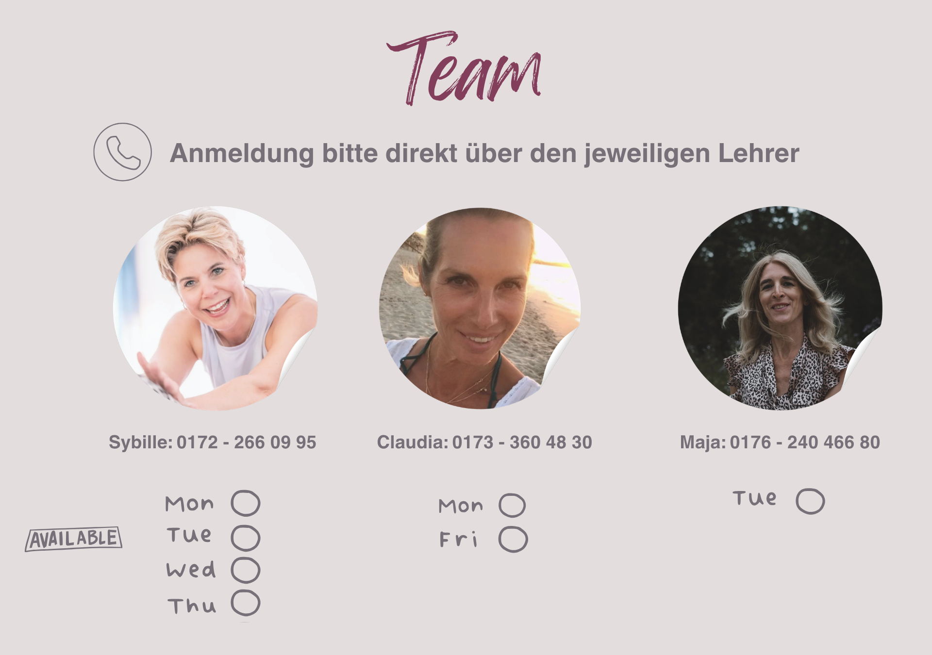 Der Preis und das Abrechnungsmodell für die Stunden von Claudia und Maja bitte direkt mit den Lehrern absprechen.